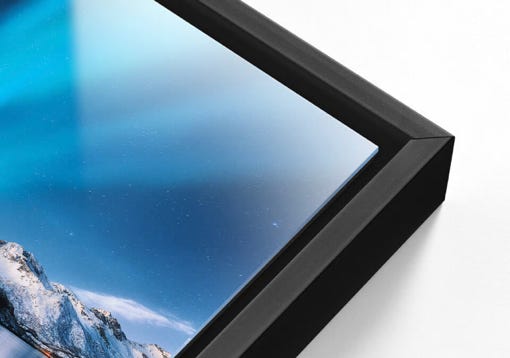 Ce cadre sépcial crée un espace visible de 8mm entre l’image et le cadre, donnant à votre tableau photo une apparence flottante !